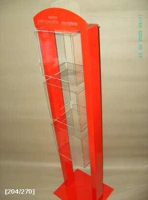Δείτε δείγματα εργασιών για stand (σταντ) αντικειμένων από plexiglass. Τα stand από plexiglass έχουν αντοχή στο χρόνο και θα χρειαστεί να τα αγοράσετε μόνο μια φορά για την επιχείρηση σας. Επικοινωνήστε μαζί μας για να δούμε τι ανάγκες έχετε και να σχεδιάσουμε μαζί το stand που θέλετε στο σχήμα και μέγεθος που θέλετε.
